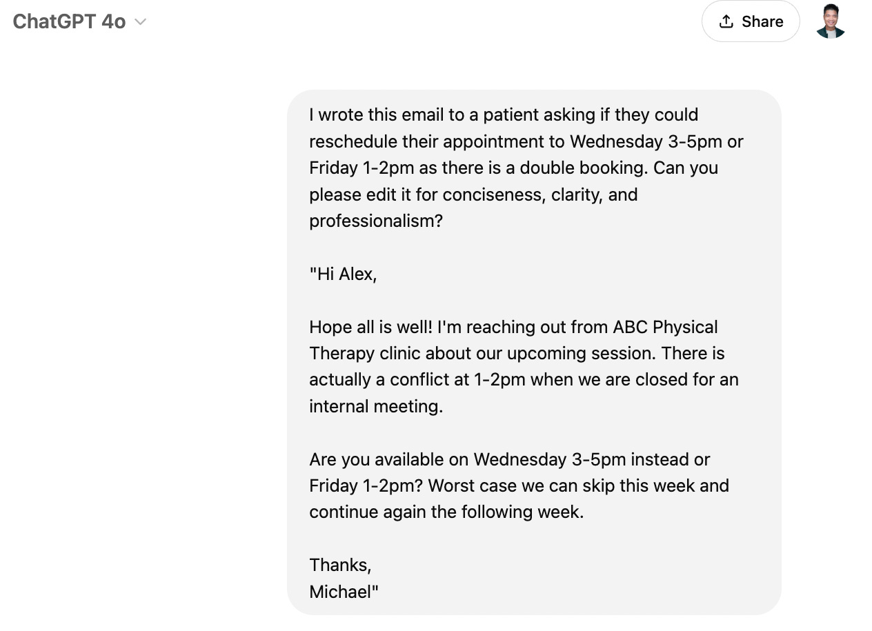 A physical therapy clinic owner asked me how to integrate AI into their business.